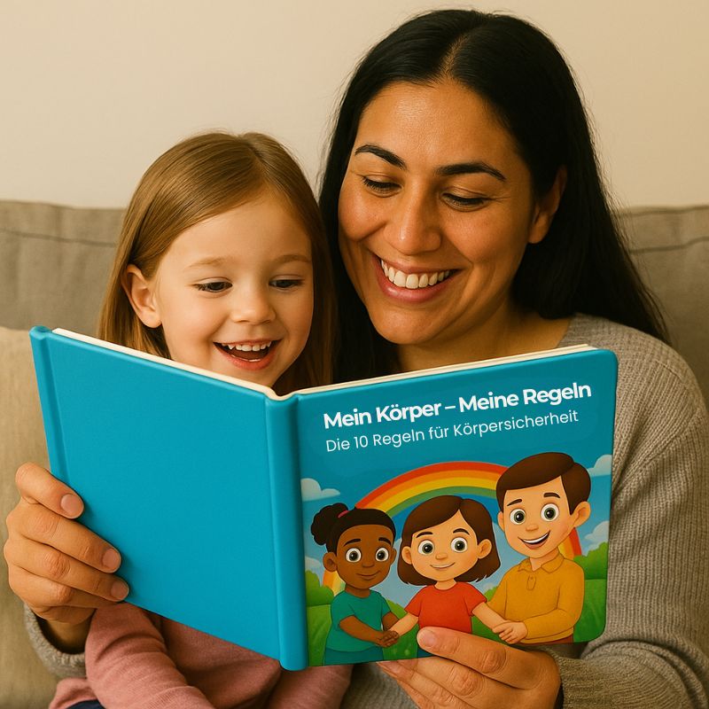 Im Inneren findest du vier einfühlsame Geschichten, die Kindern mit einfachen Worten und liebevollen Illustrationen wichtige Botschaften vermitteln: von der Unterscheidung zwischen sicherer und unsicherer Berührung, über das Bewusstsein, dass ihr Körper ihnen selbst gehört, bis hin zum Verständnis, dass Geheimnisse keine Angst machen sollten – und schließlich, an welche vertrauten Erwachsenen sie sich wenden können.